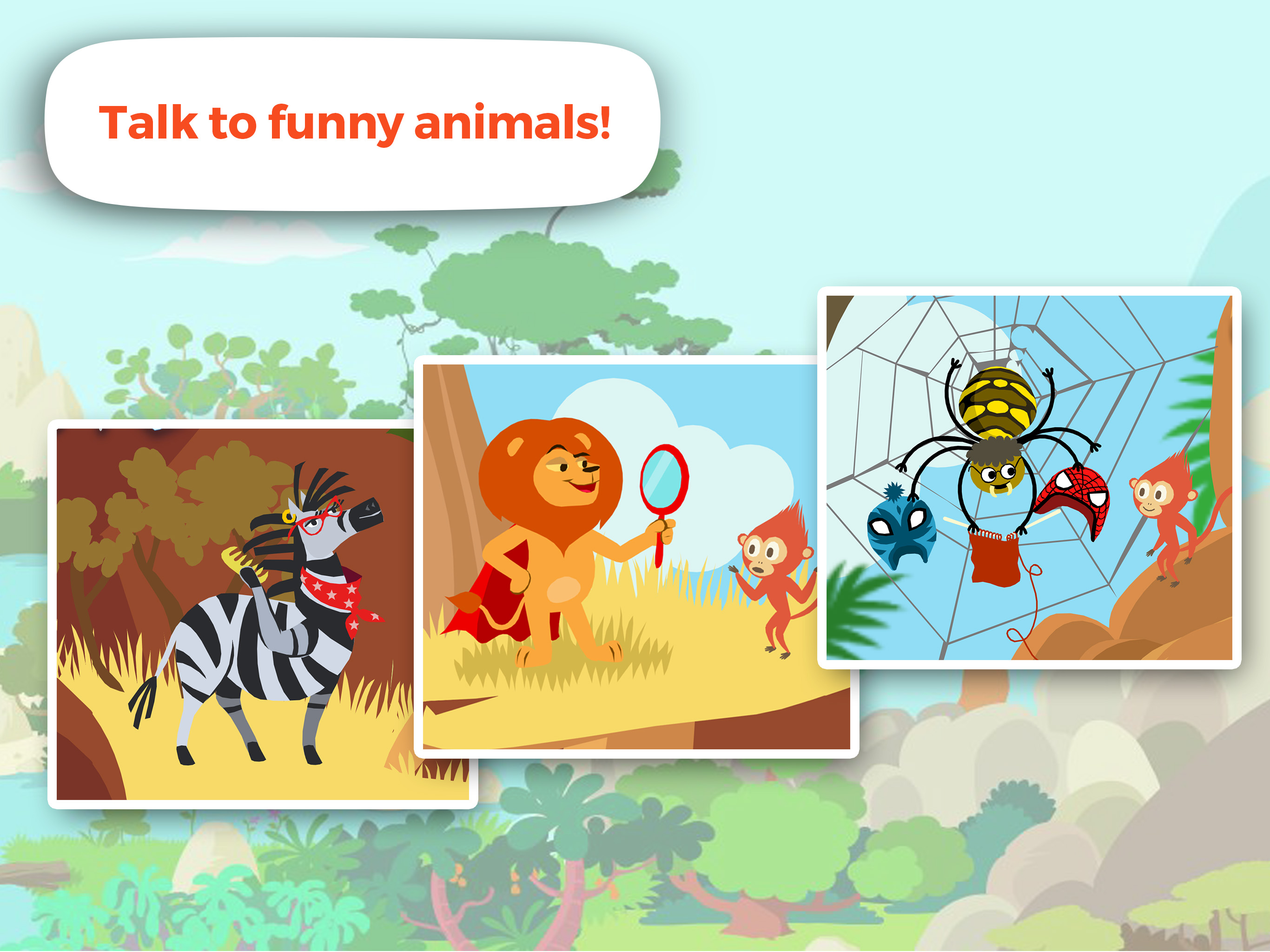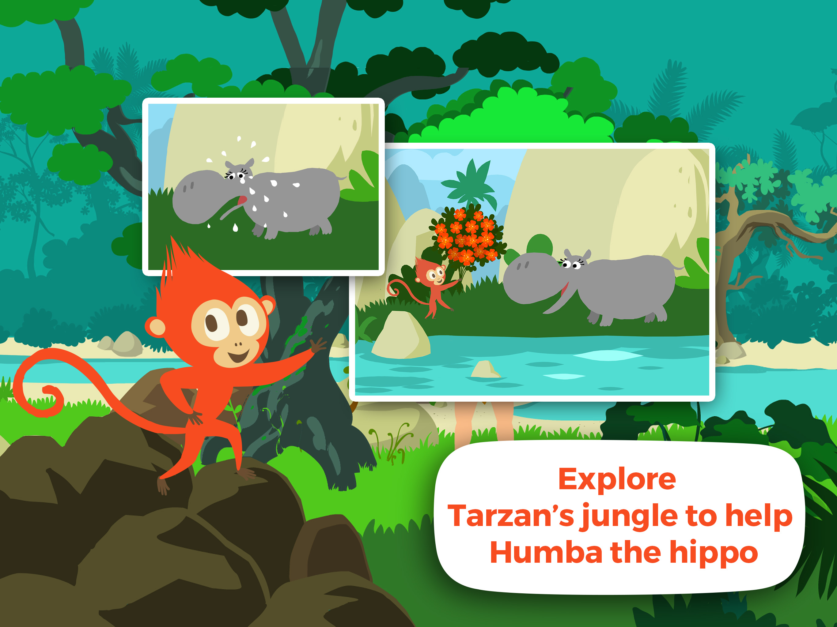 “A beautiful interactive story and an adventure game to play as a family” With Tarzan and his friend Monkey Max, explore the African Jungle. Dive into a friendship quest that will initiate kids to values of sharing, respect and solidarity. ► A MISSION TO ACCOMPLISH In this adventure, the child plays Monkey Max, a little monkey who hears Humba cry. The poor little hippo does not have any friends to play with. Fortunately, Max knows everyone. Your mission: find a friend to Humba! ► A WORLD TO EXPLORE Explore Tarzan’s Jungle, follow the big River and get through the sunny Bush! Meet new friends who will help you collect precious items in your quest! Take a walk, climb on rocks and jump from tree to tree! ► A GAME TO PLAY AS A FAMILY Continue the story and question the animals to discover who will be friend with Humba. Will it be Badoum the elephant, Leo the lion or Tarzan the Ape-man? An original story for kids between 3 and 6 years old that you can discover together as a family. It was designed to develop children’s curiosity and raise awareness about values of friendship, mutual help and empathy. FEATURES: • Use your fingertips to make Monkey Max move • Walk freely in the universe of Tarzan • Discover cute animals and colorful animations • Become unbeatable on African animals thanks to the info boxes • Listen to the story in English and French • No ads and further in-app purchases Have a look at the official website: www.tarzan-thegame.com Follow us on the official Facebook: www.facebook.com/kidsmania.official/ Copyright 2016 © Edgar Rice Burroughs, Inc. All Rights Reserved. TARZAN™, TARZAN OF THE APES™, and TARZAN YELL™ Owned by EDGAR RICE BURROUGHS, INC. And Used by Permission © 2016 Kids' Mania is a trademark of Anuman Interactive Copyright © 2016 Anuman Interactive ------------------------------------- Kids' Mania is the children's label from videogame and software publisher Anuman Interactive. Our aim is to offer children educational/adventure games and interactive stories that help them grow by nurturing their curiosity, imagination, reflexes and sense of humor. Key words ENG: nature,jungle,kids,moral,friends,animals,learn,french,trees,interact,cute,curious,discover,parrot