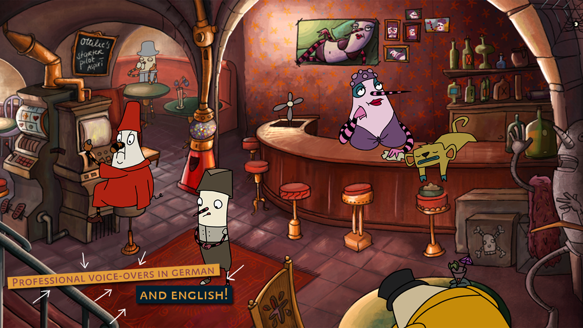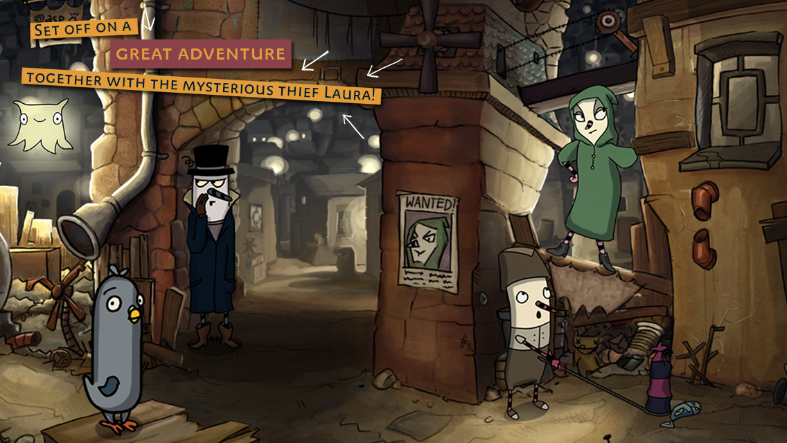 The Inner World – A hilarious and critically acclaimed 2D-Point’n’Click Adventure. Robert is a novice, a bit clueless, but with a heart of gold. He lives a peaceful life as a court musician in Asposia's largest wind monastery. Contrary to the laws of physics, Asposia is an enormous, hollow space surrounded by an infinite expanse of earth. The world's air is provided through three wind fountains, but as one wind fountain after the other petered out and the wind gods came to Asposia, all of the sudden Robert found him in the middle of a whirlwind. Together with the help of the mysterious thief Laura, his best intentions and no clue whatsoever, Robert sets off on his adventure to discover the secret of the wind's disappearance. Will the young adventurer be able to save his world? And what are Laura´s secret intentions…? Features, Features, Features! This is where The Inner World shows what it means to be lavishly with tons of content waiting for you: Screamingly funny dialogues! Numerous tricky puzzles! A handmade world fully drawn with love and devotion invites you to discover countless details (at least 325!). A patented multi-level hint system enables everyone to finish the game! A wonderful comforting atmosphere! Eye-pampering backgrounds in non-stereoscopic handmade 2D (!) – going up against all current graphic trends! Five spectacular chapters! A story with more twists than any Asposian nose! Stunning cartoon-like animations! The most epic soundtrack since the origin of Asposia as well as professional voice overs – even lip sync! Lots of cut scenes! Optional hotspots! And of course: Robert, the very-very-very-VERY-last hope for Asposia! -- Texts and voice-overs 100% in English (and German) -- -- Full game, no In-App-Purchases – *** Awarded as Best German Computer Game 2014 *** *** Awarded as Best German Family Game 2013 ***