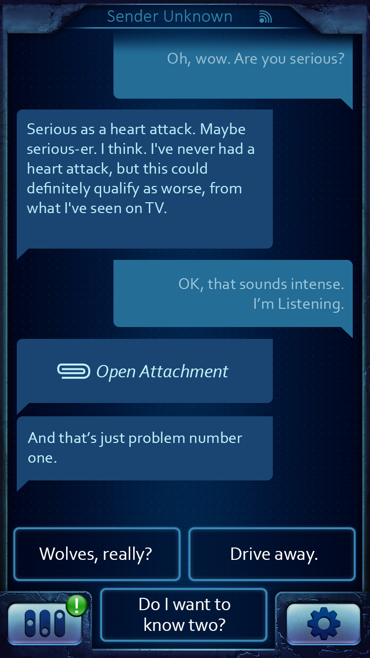 Sender Unknown is an interactive text adventure game in the thriller genre written by a professional writer. Unravel all mysteries while chatting with a stranger. Your choices can alter the story and change the lives of the characters. Morgan and friends didn't do anything wrong, but find themselves in harrowing danger. Help them survive the traps and make difficult choices. Their life is in your hands now. The dialogue and story are written by professional writer Lisa Brunette. Morgan's friends and insulin supply are missing, and it seems the madman who took them wants to play games through the radio. He has a thing for riddles and traps—human traps, that is. - Explore the story of this interactive adventure while chatting with a stranger! - Realtime chat adventure by bestseller author Lisa Brunette!